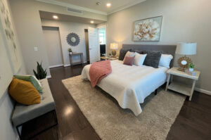 Avalon apartments are ideal living spaces for residents who need minimal assistance. For an individual resident, the floor plan features a living-dining room, bedroom, kitchenette and bathroom. On Avalon’s couples floor, 15 two-bedroom, two-bath apartments enable couples to share life together while the dependent spouse receives assisted living help. Avalon residences have bay windows and crown molding, plus other distinctive appointments. Each Avalon floor has a central dining room, a resort-like spa, and comfortably furnished rooms for socializing with friends and family.