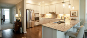 Red brick exteriors, private yards with brick terraces or wood decks, and attached two-car garages characterize The Glebe Homes, our most spacious two-, three- and four-bedroom residences. Sunrooms, country kitchens, and gas fireplaces are just some of the many upgrades. Featuring: